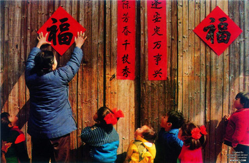? ? ? 而貼春聯(lián)也是過年必不可少的呢,每逢春節(jié),無論城市還是農(nóng)村,家家戶戶都要精選一幅大紅春聯(lián)貼于門上,為節(jié)日增加喜慶氣氛。